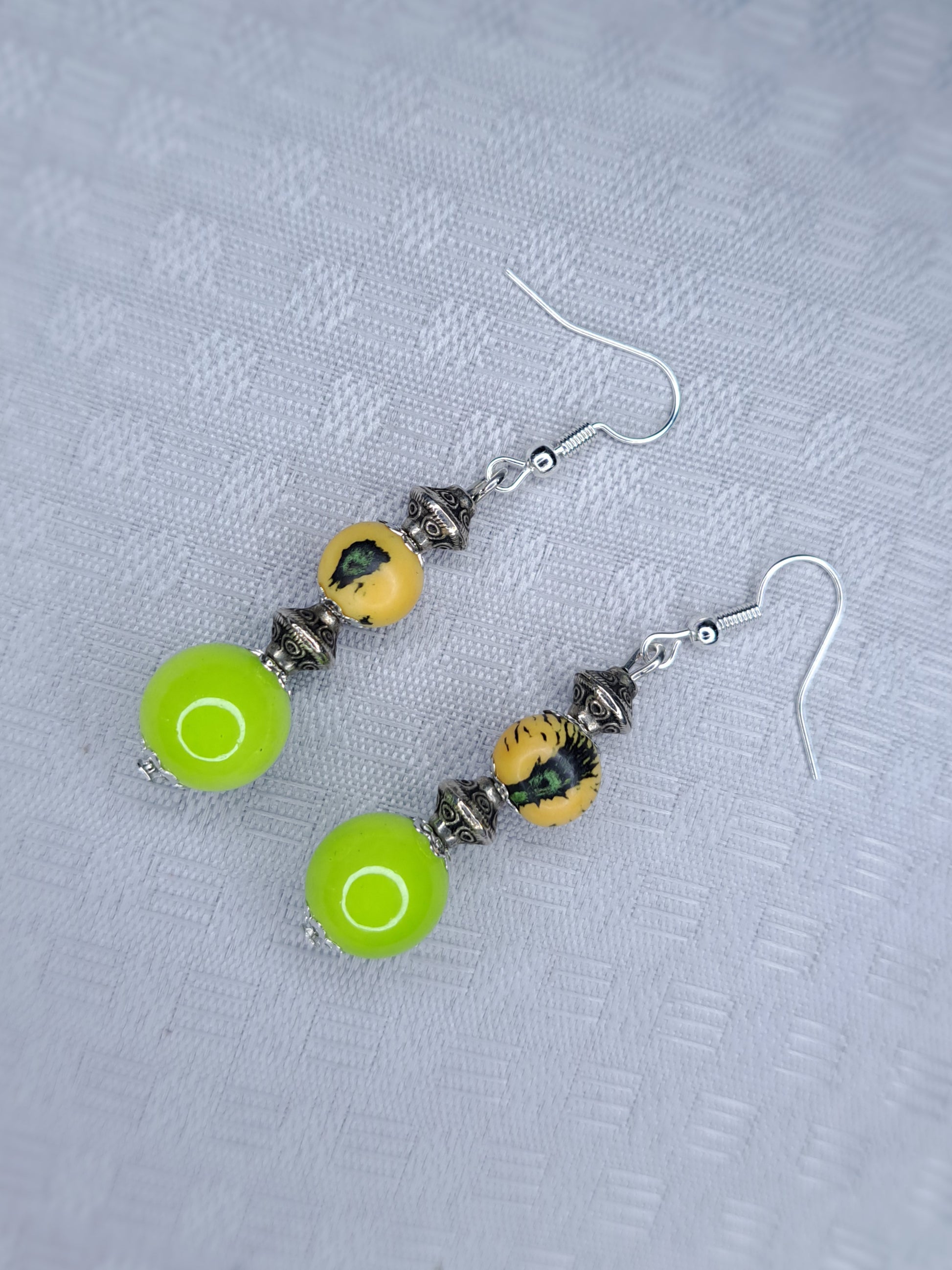 Green & silver stainless stainless earrings