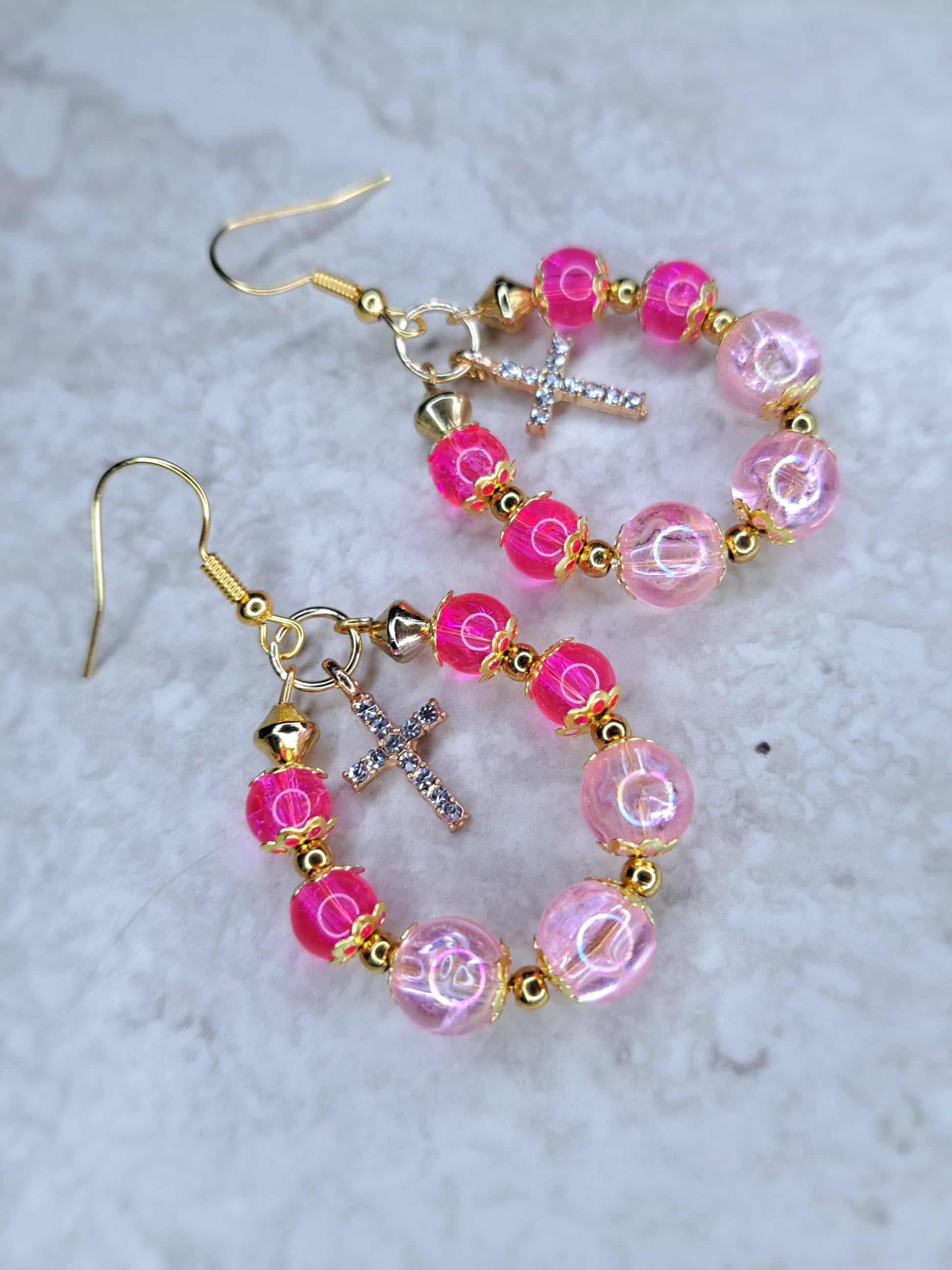 Pink & gold cross earrings Earrings – Handmade/Upcycled Beads & Stainless Steel