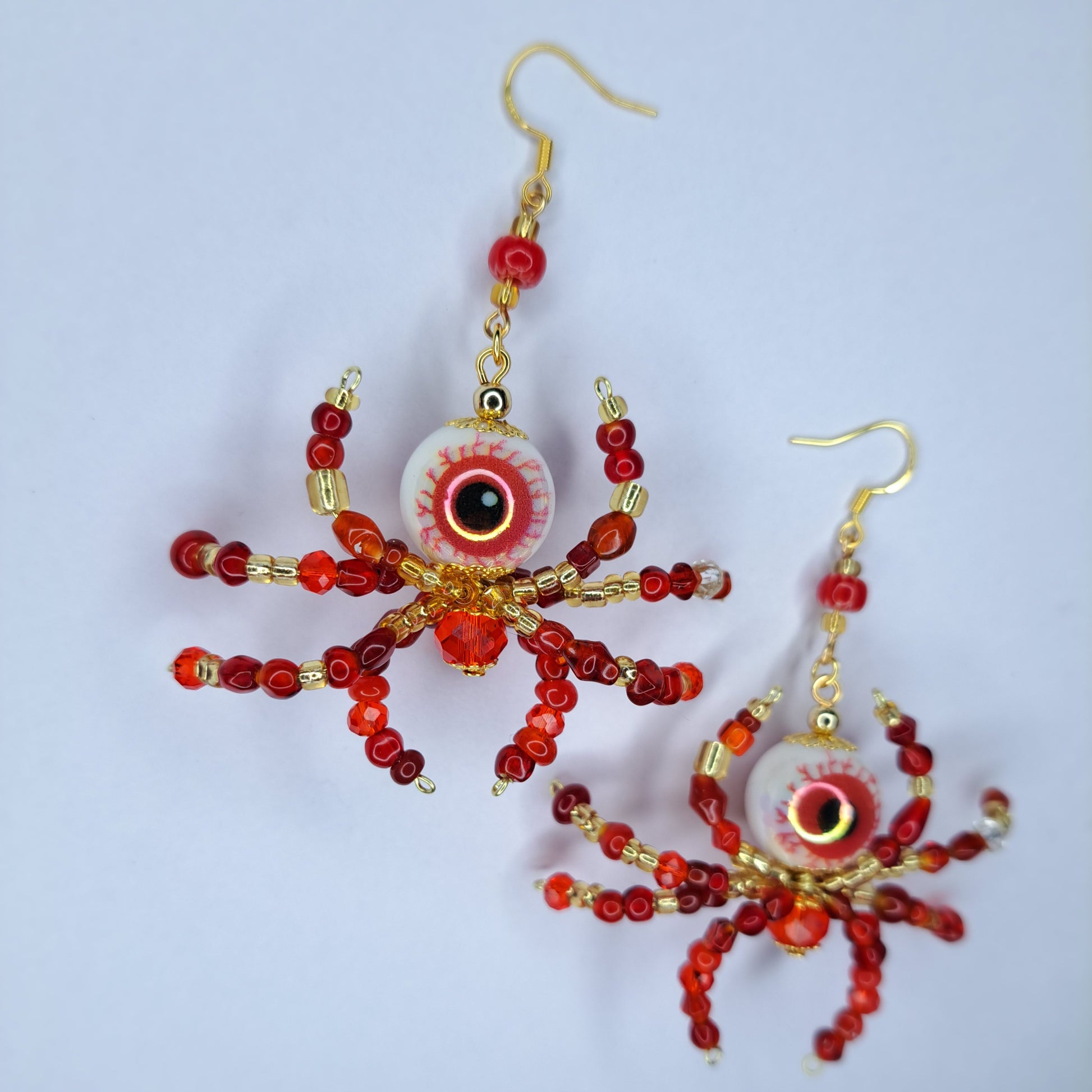 Red beaded eyeball spider gold tone s925 sterling silver earrings
