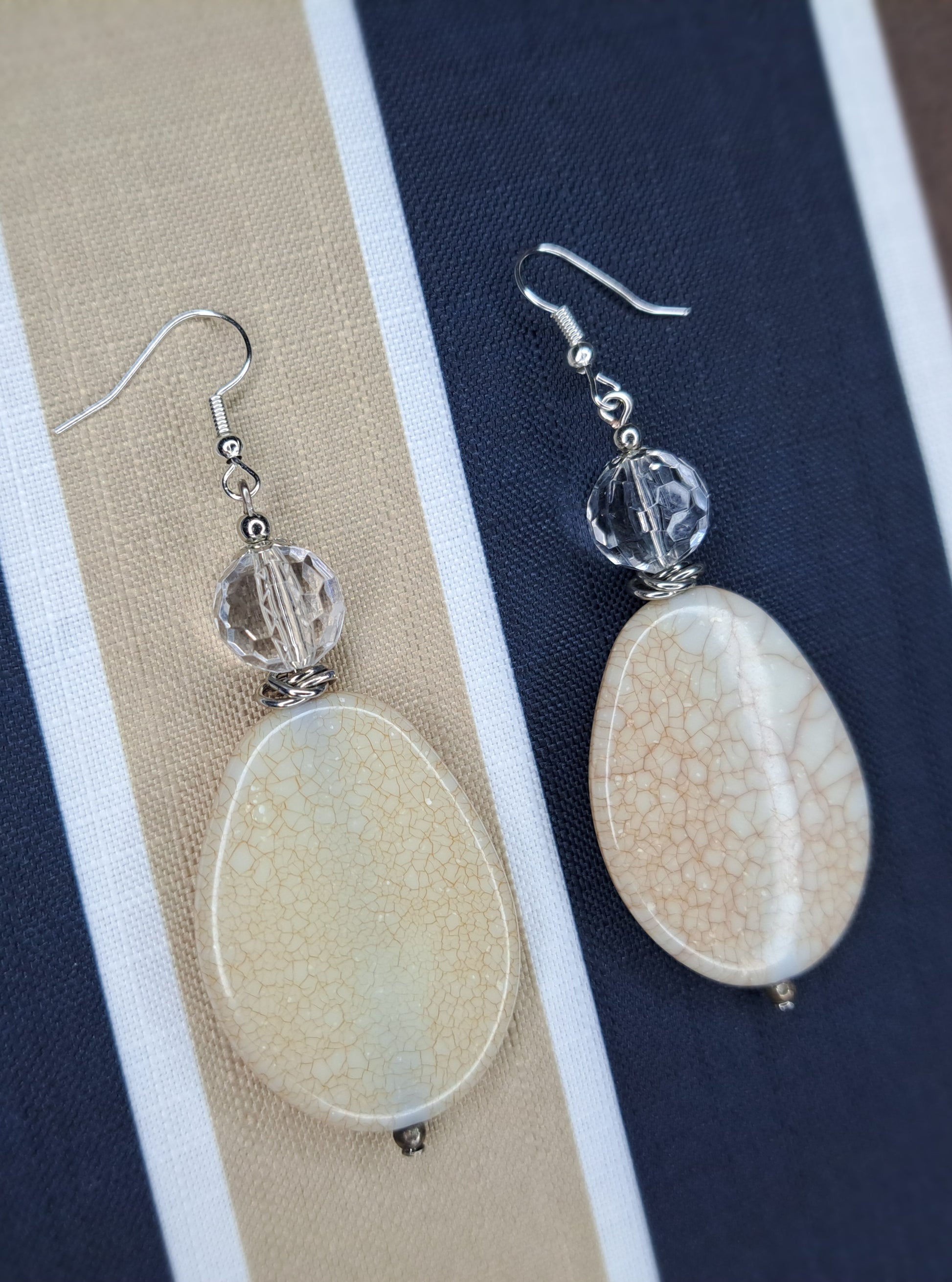 Tan & clear stainless steel gem earrings