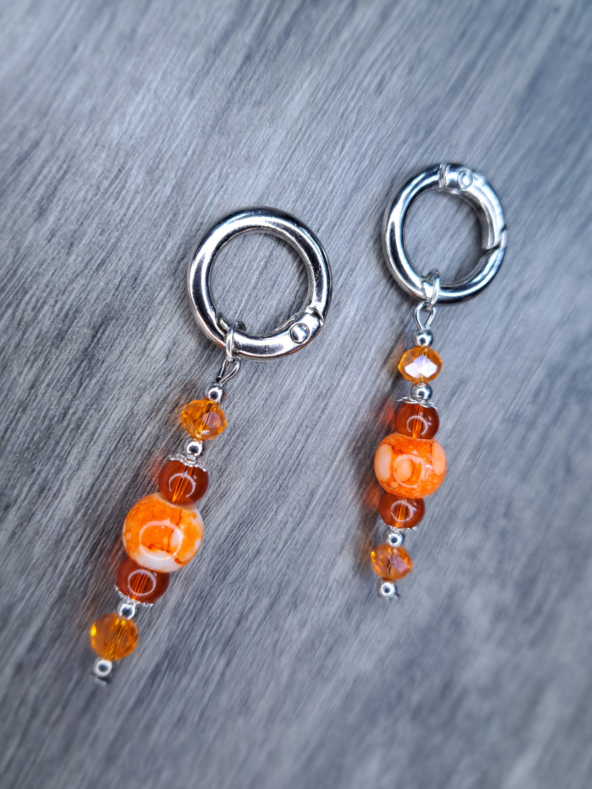 (Stretched ears) Orange beaded stainless steel earrings